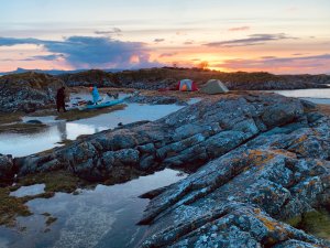 Wild kayak camping on The Skerries, Arisaig, Scotland April 2024