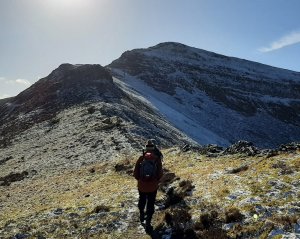 Looking across to Pen Gloch-y-pibwr and Pen Allt-mawr from Pen Cerrig-calch. It was cold, but there