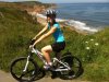 Linda doing a spot of mountain biking on the Durham coastal path